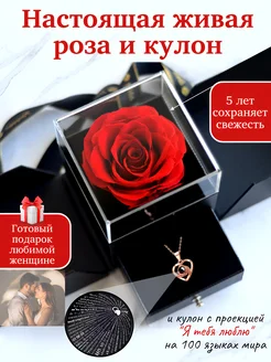 Подарочный бокс живая роза с подвеской