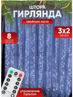 Гирлянда роса мишура хвойная лапа белая 3*3