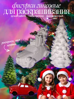 Гипсовые фигурки "Машинка и елочка"для раскрашивания подарок
