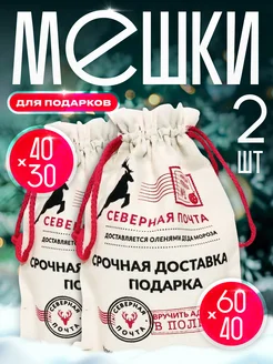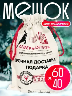 Мешок для подарков новогодний холщовый 60х40 и 40х30