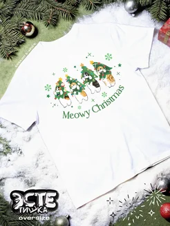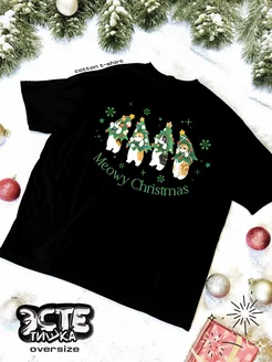 Новогодняя винтажная футболка котики оверсайз