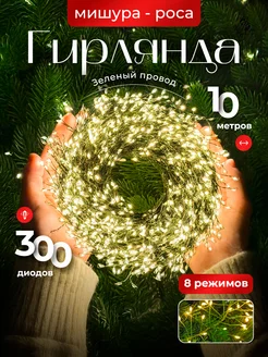 Гирлянда хвойная лапа мишура светодиодная 50м