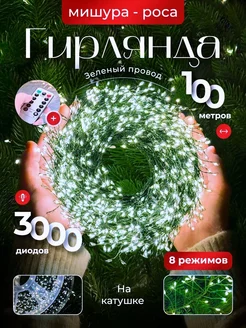 Гирлянда хвойная лапа мишура светодиодная 100м