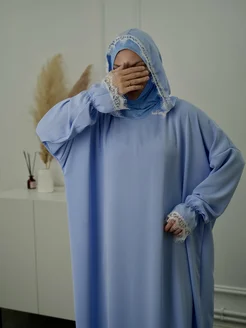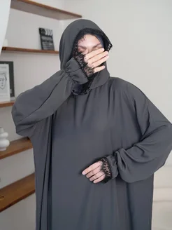 Намазник с пришитым химаром и капюшоном из абайной ткани