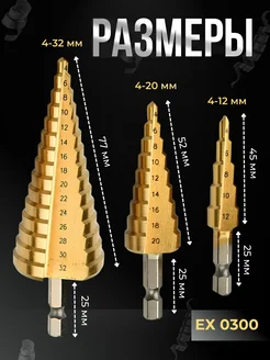 Сверло ступенчатое по металлу 4-32 мм, набор сверл