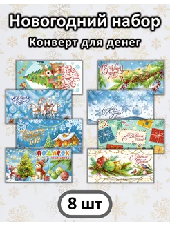 Новогодний Конверт для денег набор 8 шт (№ Н21)