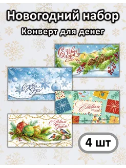 Новогодний Конверт для денег набор 4 шт (№ Н20)