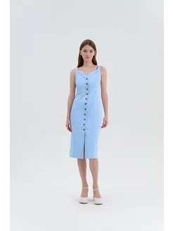 Сарафан миди летний хлопковый на пуговицах с вырезом