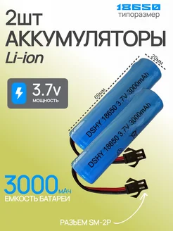 Аккумулятор 18650 3.7v 3000mah 2шт разъем SM-2P