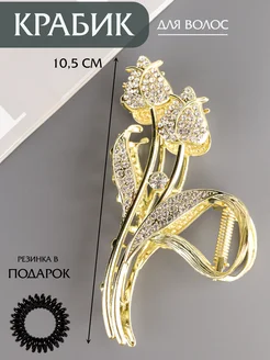 Крабик для волос большой металлический со стразами розы