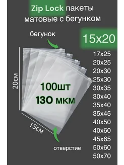 Упаковочные пакеты Zip Lock с бегунком 15х20