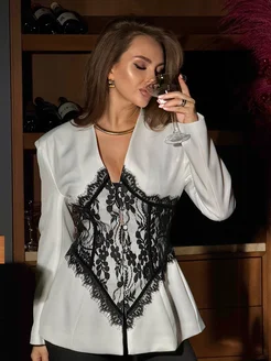 Пиджак кружевной приталенный с гипюром имитация корсета