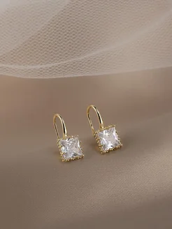 Серьги с квадратным камнем фианитом позолоченные