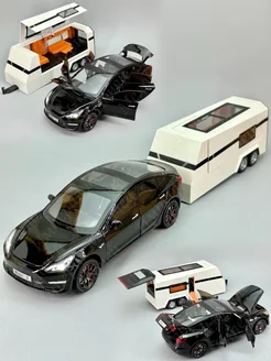 Металлическая машинка Тесла Модел 3 с трейлером 1 24