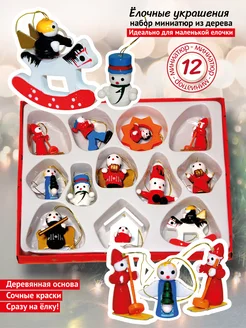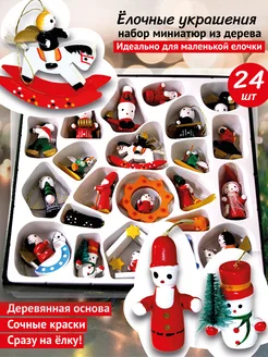 Игрушки елочные набор из дерева мини-фигурки
