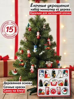 Игрушки для елки набор деревянные мини-фигурки