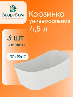Корзинка 4,5 л универсальная (белый) Poplar комплект 3 шт