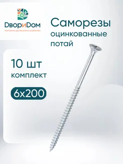 Саморезы 6х200 оцинкованные потай 10 шт