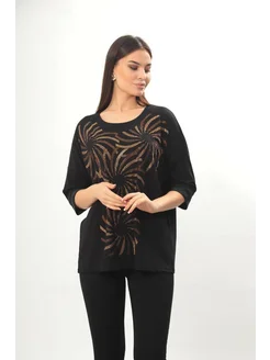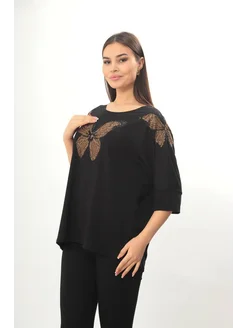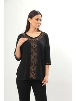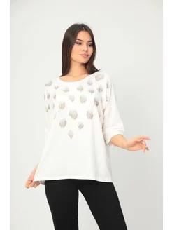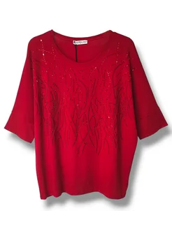 Туника-кофта трикотажная со стразами больших размеров