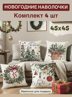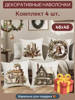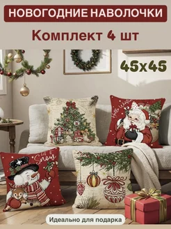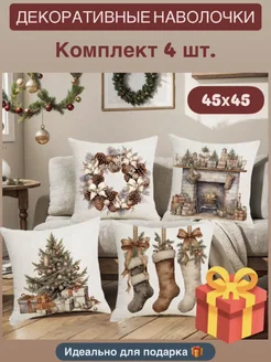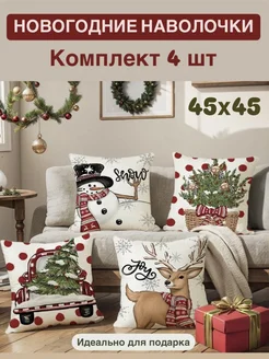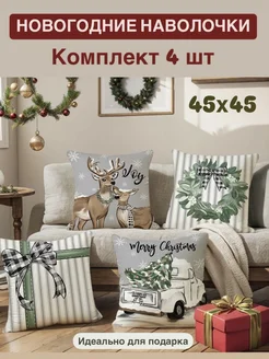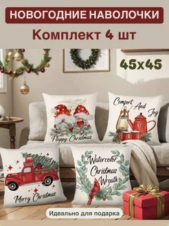 Новогодние наволочки декоративные 45х45 на молнии набор 4 шт
