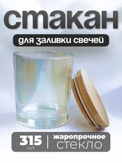 Стакан для свечей стеклянный с деревянной крышкой