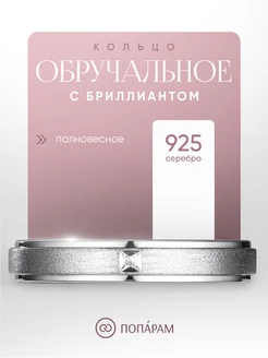 Обручальное кольцо серебро 925 пробы c бриллиантом