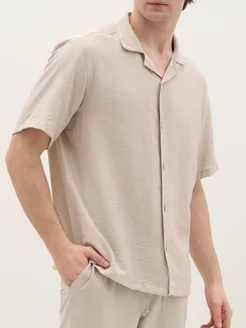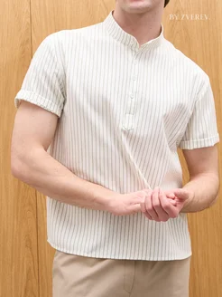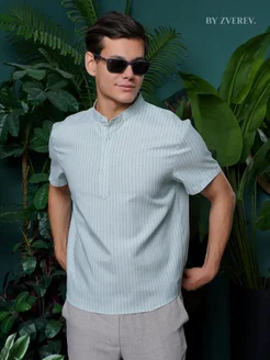 Рубашка поло льняная с коротким рукавом воротник стойка