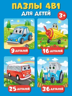 Макси пазлы для детей 4 в 1 машинки развивающие крупные