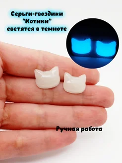 Серьги гвоздики Котики светятся в темноте