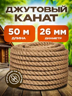 Канат джутовый универсальный диаметр 26мм, длина 50м