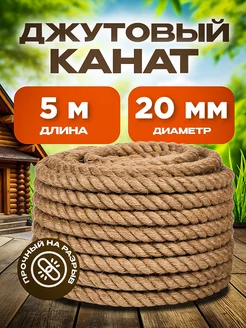 Канат джутовый универсальный диаметр 20мм, длина 5м