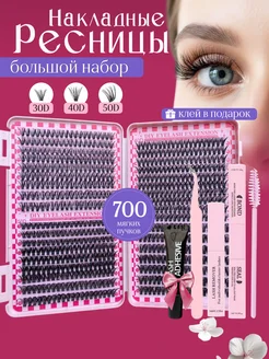 Набор пучковых накладных ресниц с клеем изгиб D, 30D 50D