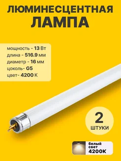 Лампа люминесцентная L 516,9мм Т5 13Вт G5 4200К 2 штуки