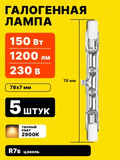 Лампа галогенная 78мм 150Вт линейная R7s 2900К 230В - 5 штук