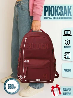 Рюкзак бордовый универсальный тканевый для школы путешествий