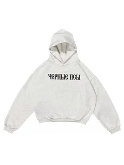 Худи оверсайз с принтом "Черные Псы" серое