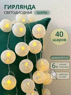 Светодиодная гирлянда "Хлопковые шарики" 6 метра