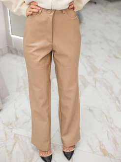 Брюки кожаные классические палаццо утепленные