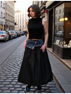 Юбка баллон макси длинная с джинсами