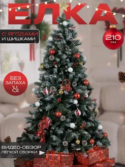 Елка искусственная новогодняя с ягодами и шишками 210 см