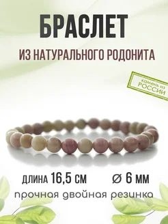 Браслет из натурального камня розовый Родонит, 6мм
