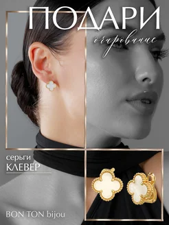 серьги клевер односторонние бижутерия