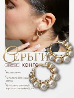 Серьги кольца с жемчугом крупные
