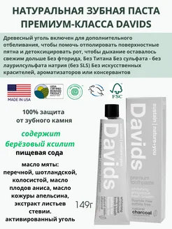 Отбеливающая натуральная зубная паста премиум Davids с углём