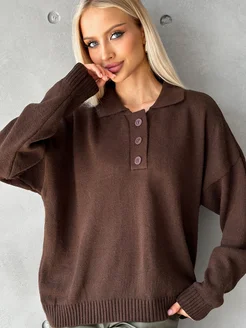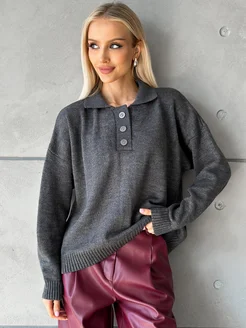 Свитер поло оверсайз вязаный c пуговицами