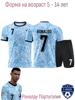 Футболка Роналду Португалия бело-голубая 2024 с шортами