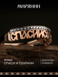 Кольцо золото и серебро с бриллиантом спаси и сохрани