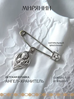 Брошь серебро 925 c бриллиантом Ангел-Хранитель
