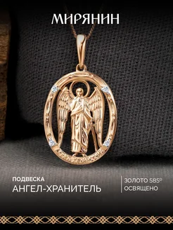Подвеска золотая 585 c 4 фианитами Ангел-Хранитель