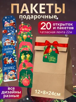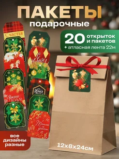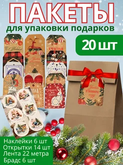 Новогодние крафт пакеты для упаковки подарков 20 штук